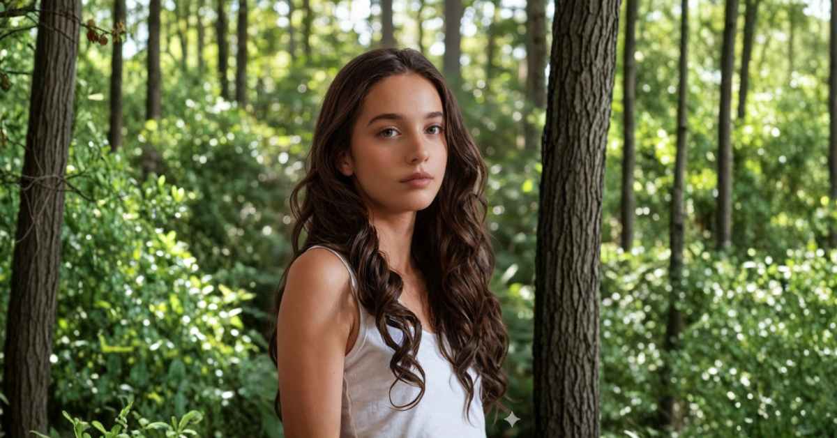 "Ganti latar belakang menjadi taman atau hutan dengan pepohonan hijau, cahaya matahari lembut menembus daun, dan efek bokeh ringan di latar belakang. Pertahankan subjek tetap tajam dan pencahayaan alami. Hasilnya harus terlihat seperti foto asli di alam"
