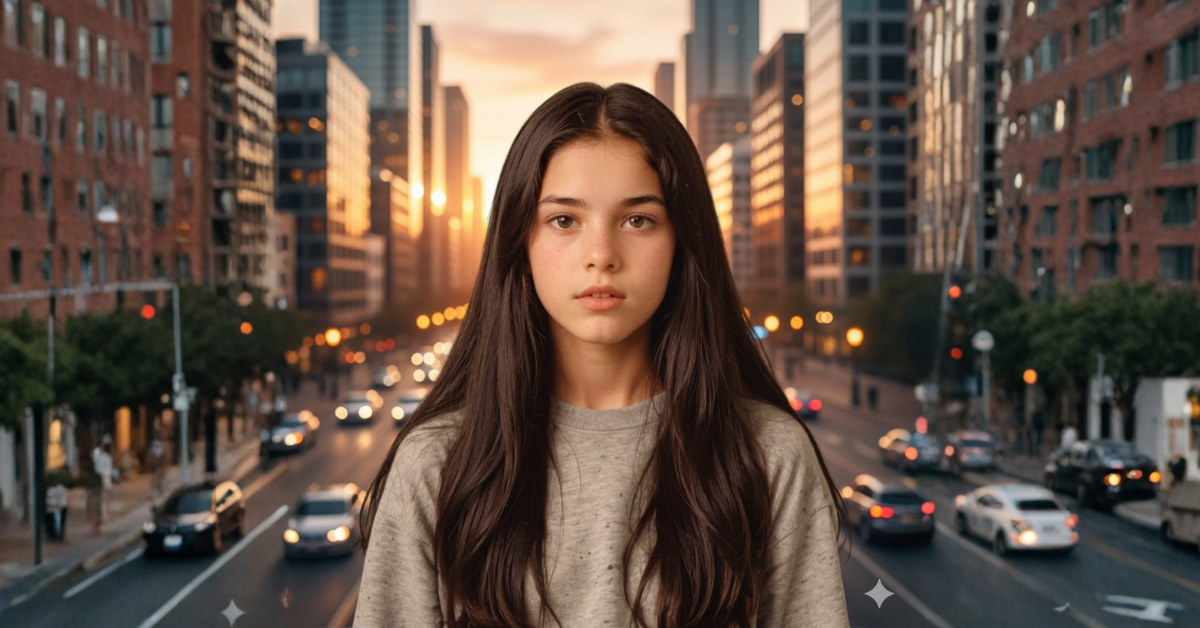 "Ubah latar belakang menjadi pemandangan kota modern saat golden hour, jalanan dengan efek blur ringan, dan cahaya hangat yang lembut. Pertahankan pose dan pencahayaan subjek agar menyatu alami dengan lingkungan kota."