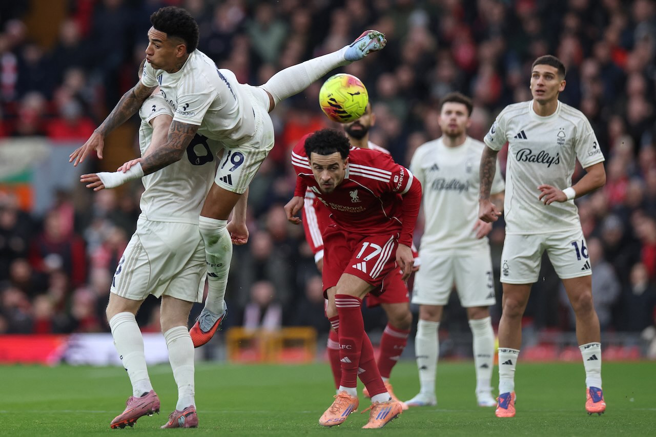 Liverpool sebenarnya memulai laga dengan tempo tinggi. Hanya dalam delapan menit, mereka sudah menekan lewat dua peluang Alexis Mac Allister. Namun semuanya diblok barisan belakang Forest.