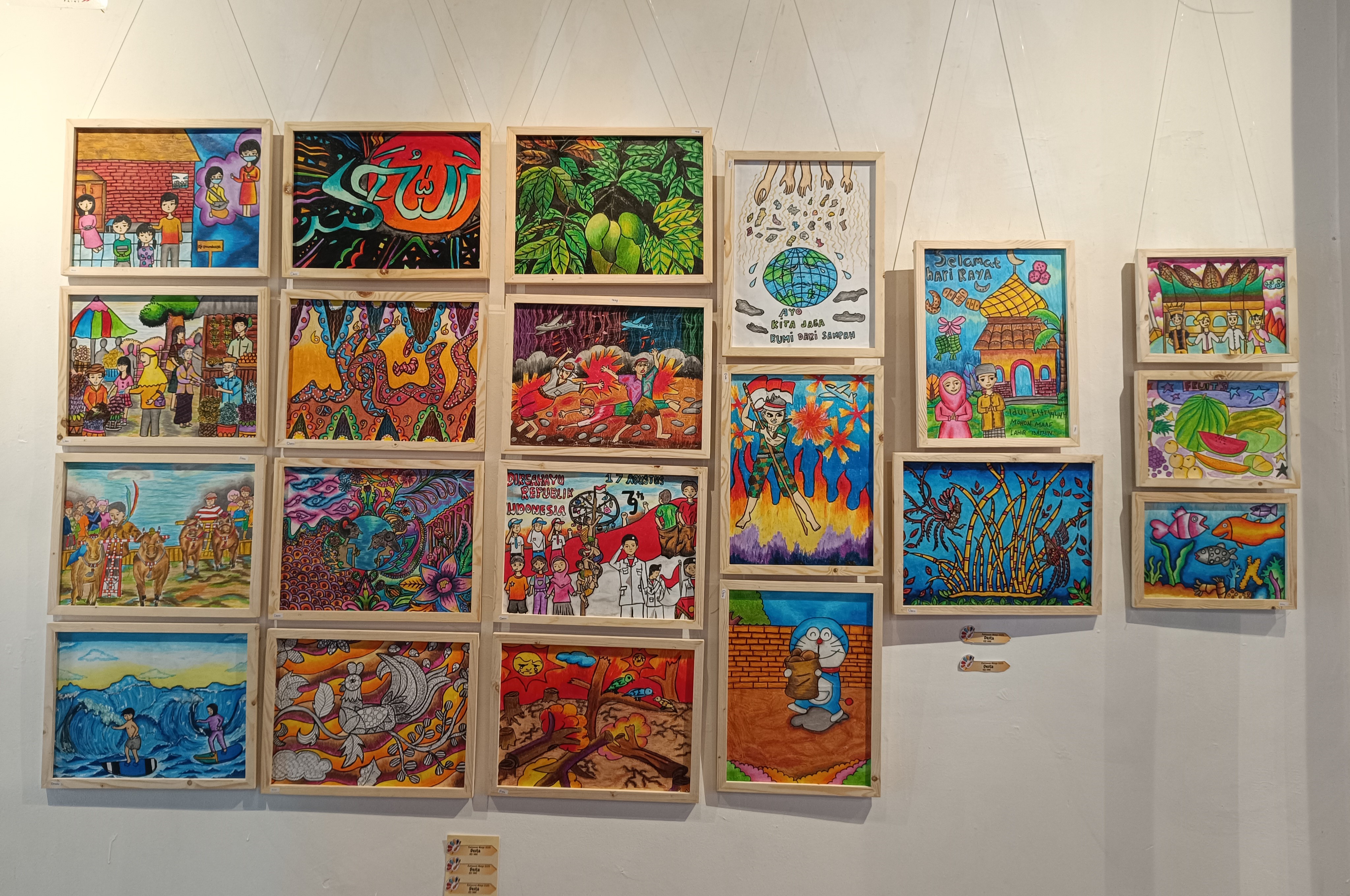 Puluhan lukisan anak-anak kelas 3 SD hingga 12 SMK dipamerkan dalam perhelatan seni yang sekaligus menjadi ruang pengakuan atas perjalanan panjang mereka dalam berkarya.