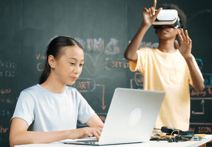 Ilustrasi pembelajaran di sekolah zaman sekarang. Memanfaatkan teknologi canggih seperti online VR. -Freepik-