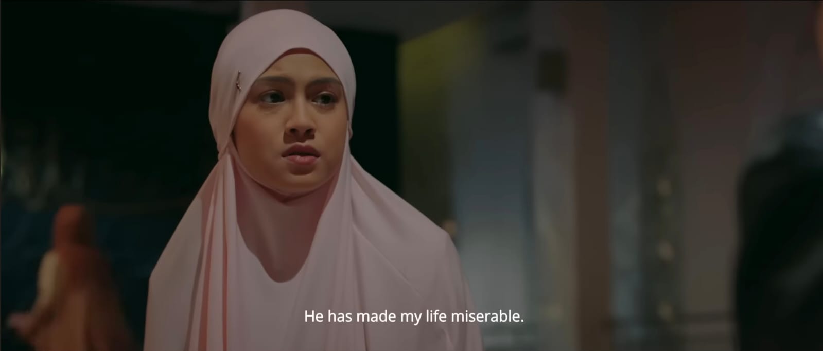 Fatimah (Hana Saraswati) menuntun Anggie (Acha Septriasa) masuk ke ruang tamu masjid. Seorang ibu jamaah memberikan air. Seorang lelaki tua membaca Al-Qur’an dengan suara lembut.