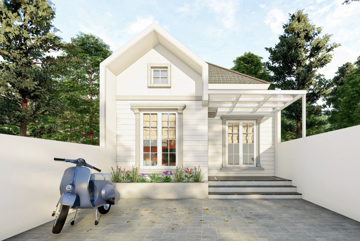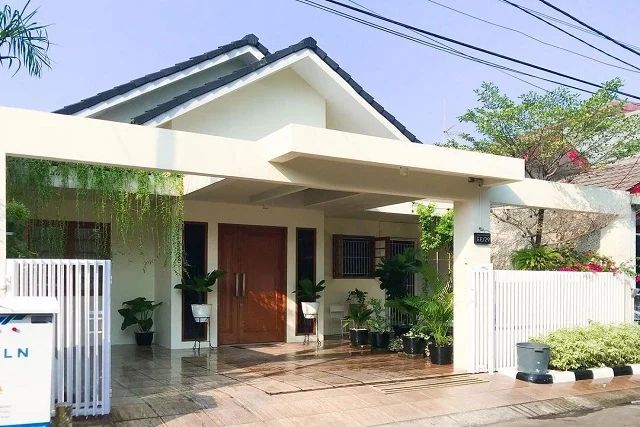 Fasad putih modern klasik menonjolkan elegansi dengan pendekatan sederhana. Warna putih memberi kesan bersih dan luas.