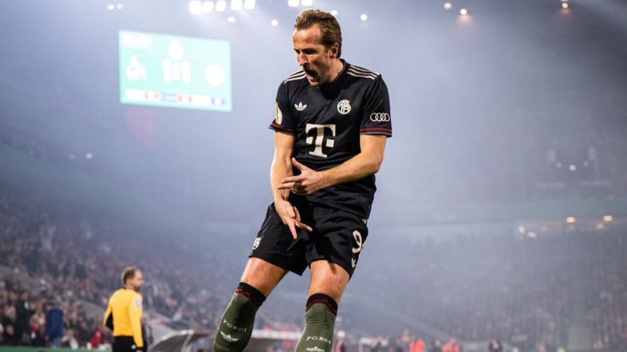 Harry Kane berselebrasi saat Bayern melawan Union Berlin di laga Bundesliga pada 8 November 2025-@TouchlineX-X