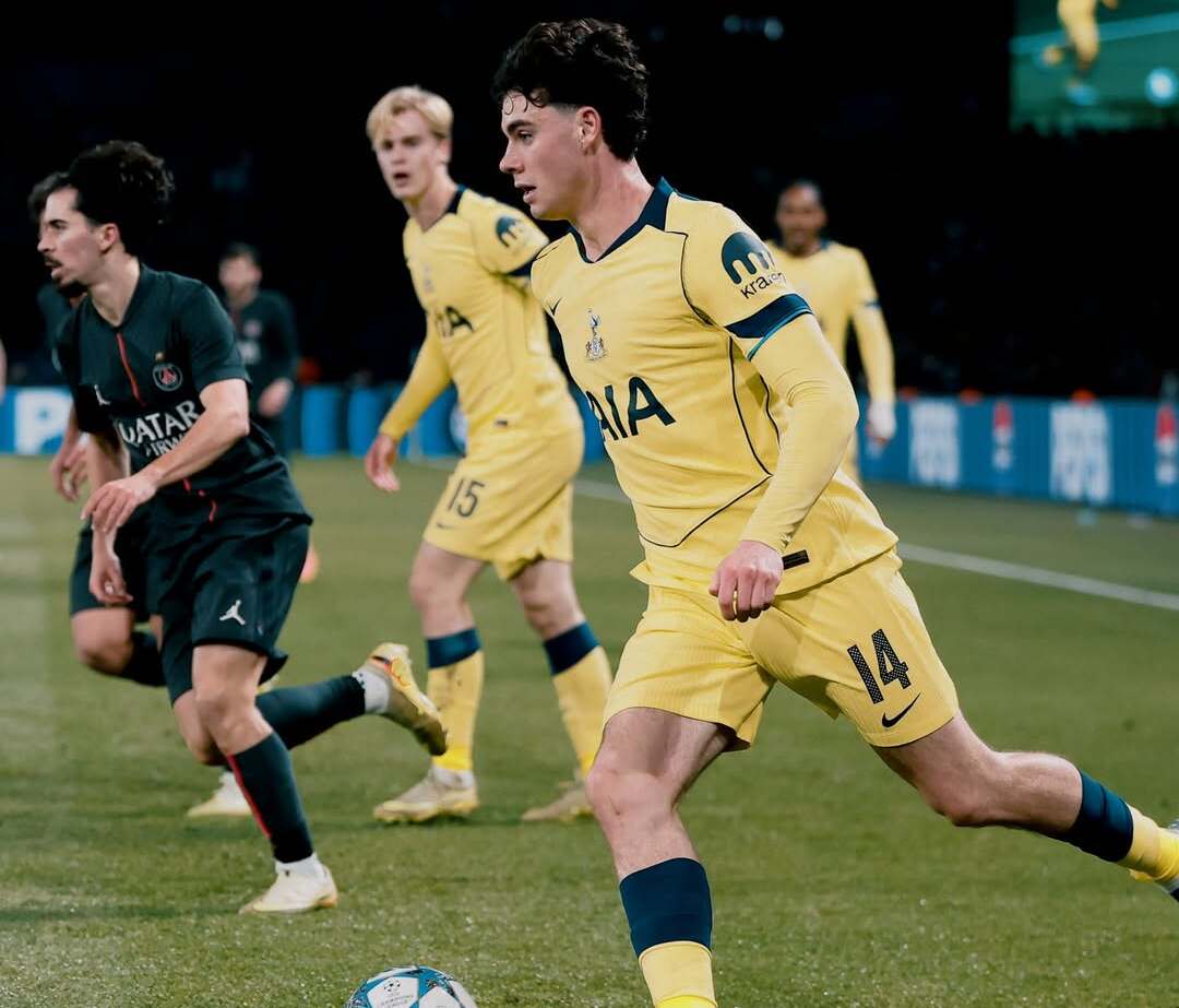 Aksi gelandang Tottenham, Archie Gray, ketika melakukan serangan dalam laga kontra PSG. Kamis, 27 November 2025--Instagram @spursofficial