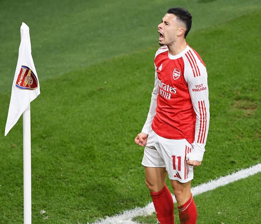 Momen selebrasi penyerang Arsenal, Gabriel Martinelli, usai mencetak gol kemenangan dalam laga menghadapi Bayern Munich. Kamis, 27 November 2025--Instagram @arsenal