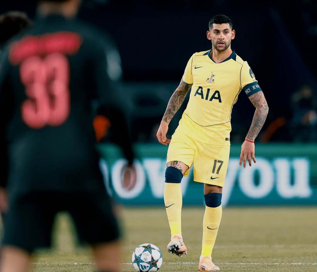 Potret bek sekaligus kapten Tottenham, Cristian Romero, dalam laga menghadapi PSG. Kamis, 27 November 2025--Instagram @spursofficial