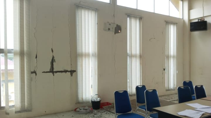 Kerusakan bangunan fasilitan gedung pemerintahan di wilayah Simeulue, Aceh pasca Gempa M6,3-BNPB-