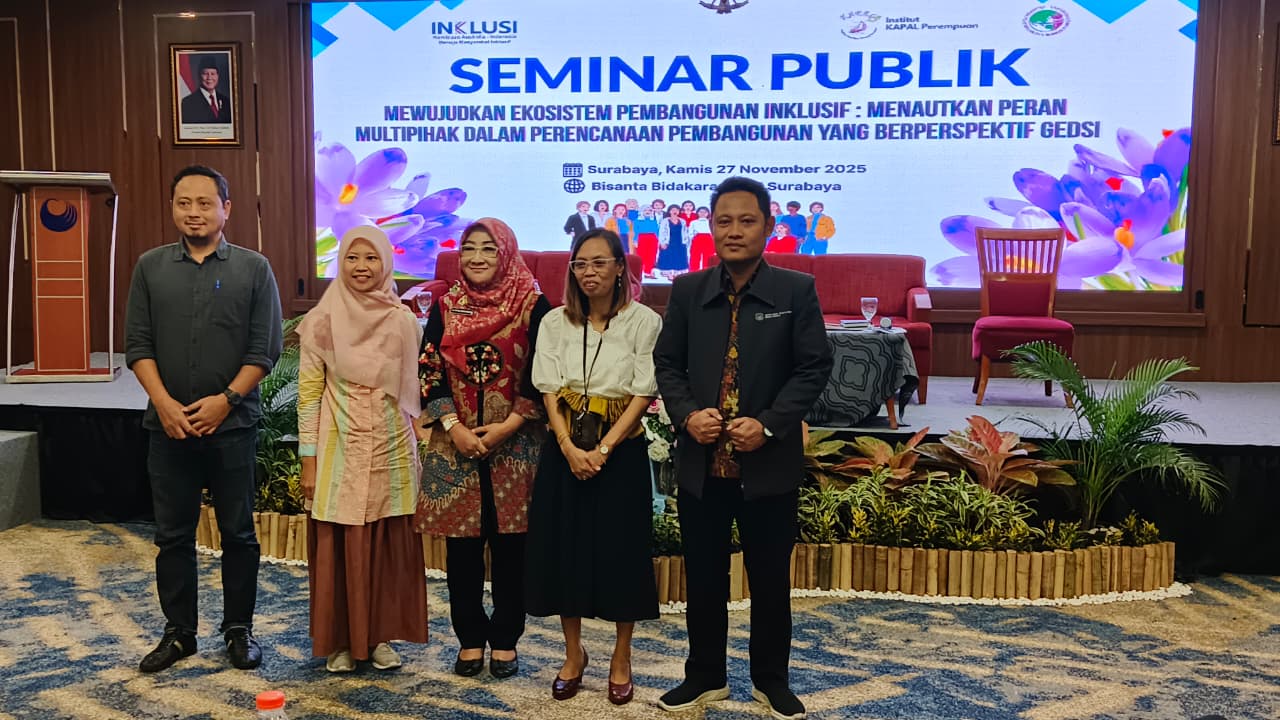 SURABAYA, HARIAN DISWAY - Kampanye nasional 16 Hari Anti Kekerasan terhadap Perempuan digalakkan. Seminar publik bertajuk Mewujudkan Ekosistem Pembangunan Inklusif: Menautkan Peran Multipihak dalam Perencanaan Pembangunan yang Berperspektif Gender Equality, Disability, and Social Inclusion (GEDSI) digelar.