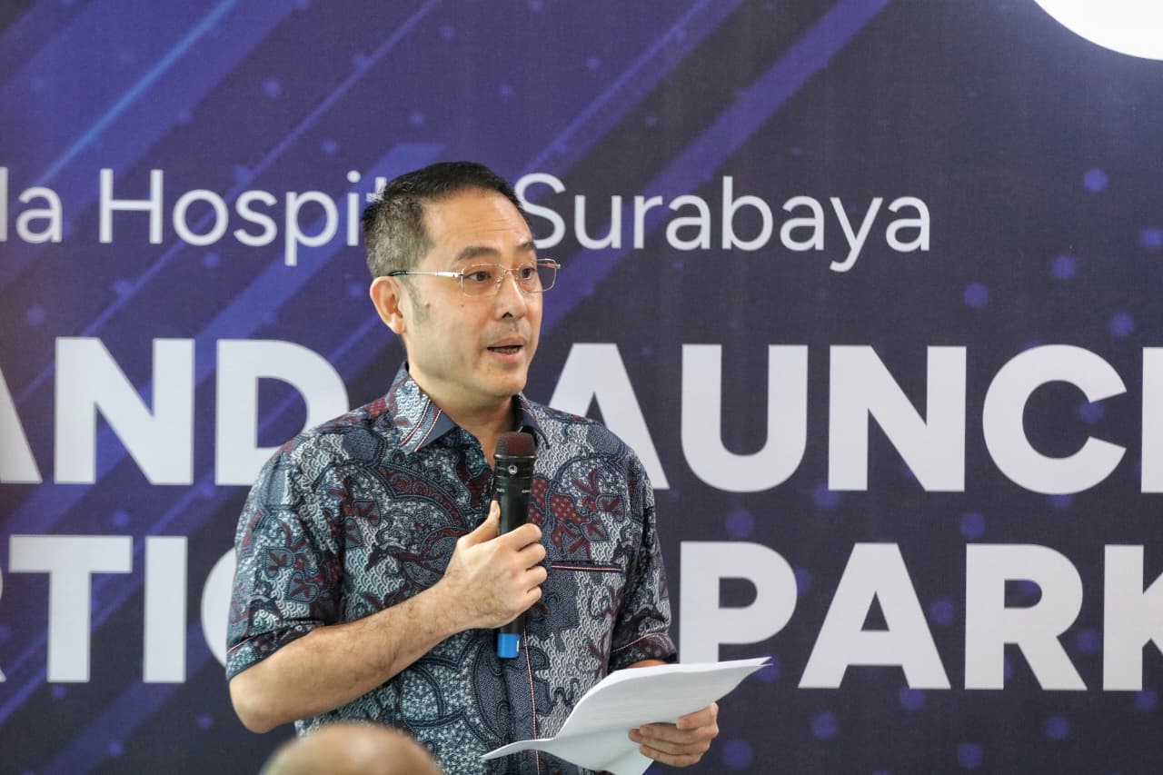 COO Mayapada Hospital Surabaya Hendy Wijaya saat memberikan sambutan di peluncuran vertical parking, Jumat, 28 November 2025-Boy Slamet-Harian Disway