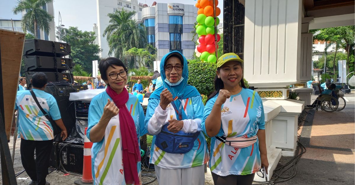 Peserta jalan sehat berangkat pukul 06.00 WIB. Para peserta lansia, anak berkebutuhan khusus, dan disabilitas mengikuti kegiatan dengan ditemani keluarga.