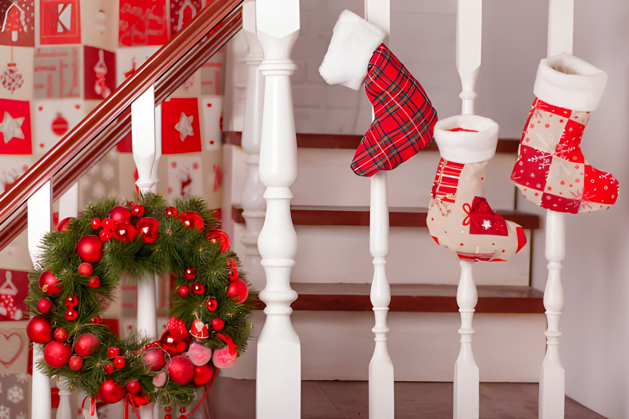 STOKING Natal di tangga mempercantik ruang sambil memberi sentuhan hangat khas perayaan keluarga. --iStock