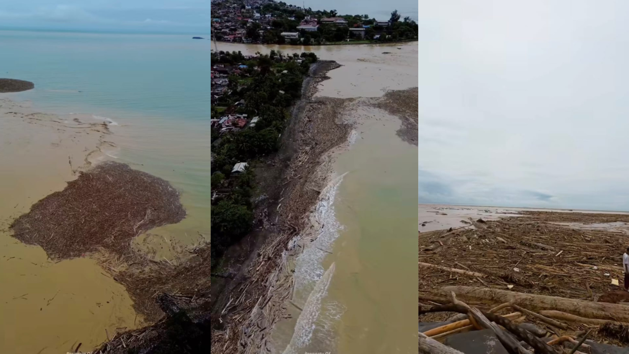 Penampakan Kayu Gelondongan Terbawa Banjir di Sumbar Kini Penuhi Pantai Parkit.--Instagram @ssc_padang.