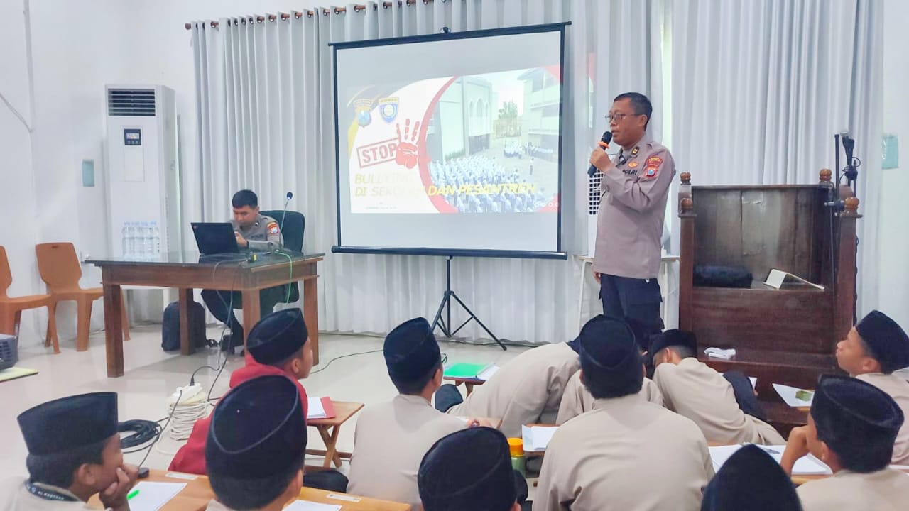 Kanit Binpolmas Satbinmas Polresta Sidoarjo, Iptu M. Lukman Hakim, bersama anggotanya menyampaikan berbagai bentuk bullying, dampak yang dapat ditimbulkan, serta langkah pencegahan agar para santri terhindar dari tindakan tersebut.