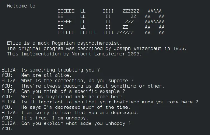 Tahun 1964, Joseph Weizenbaum menciptakan konsep ELIZA sebuah chatbot pertama. Yang kemudian diimplementasikan oleh Norbert Landsteiner pada 2005. Kemampuannya sederhana, tapi konsepnya membawa perubahan besar untuk dunia AI.