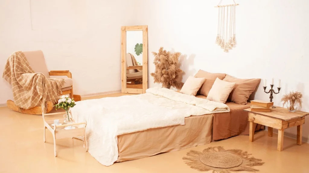 NUANSA krem dan coklat muda menciptakan suasana hangat, natural, dan nyaman untuk hunian minimalis sehari-hari. --domibed.id