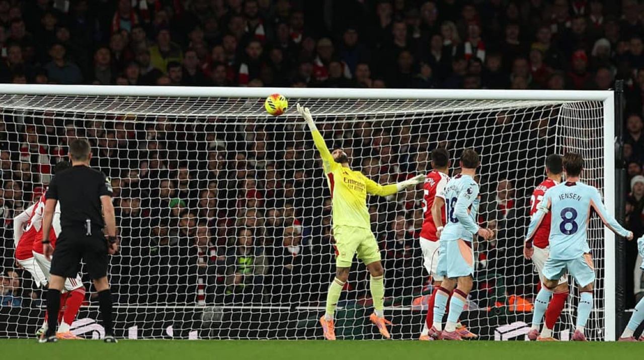 Aksi penyelamatan gemilang David Raya dalam laga lanjutan ke-empat belas Liga Inggris 2025/2026, Kamis dini hari WIB, 4 Desember 2025--Getty Images
