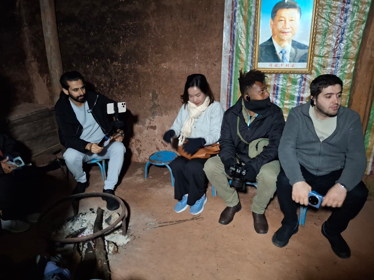 JURNALIS CIPCC berdiang di rumah warga desa Sanhe, Sichuan.-Doan Widhiandono-