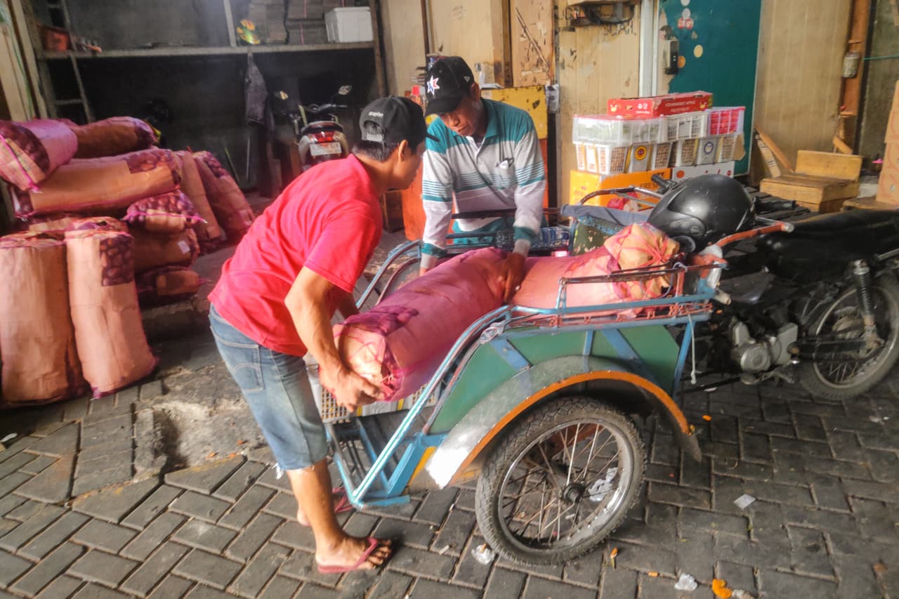 Pedagang mempersiapkan barang dagangannya di Pasar Buah Tanjungsari, Kamis, 4 Desember 2025-Tirtha Nirwana Sidik-Harian Disway