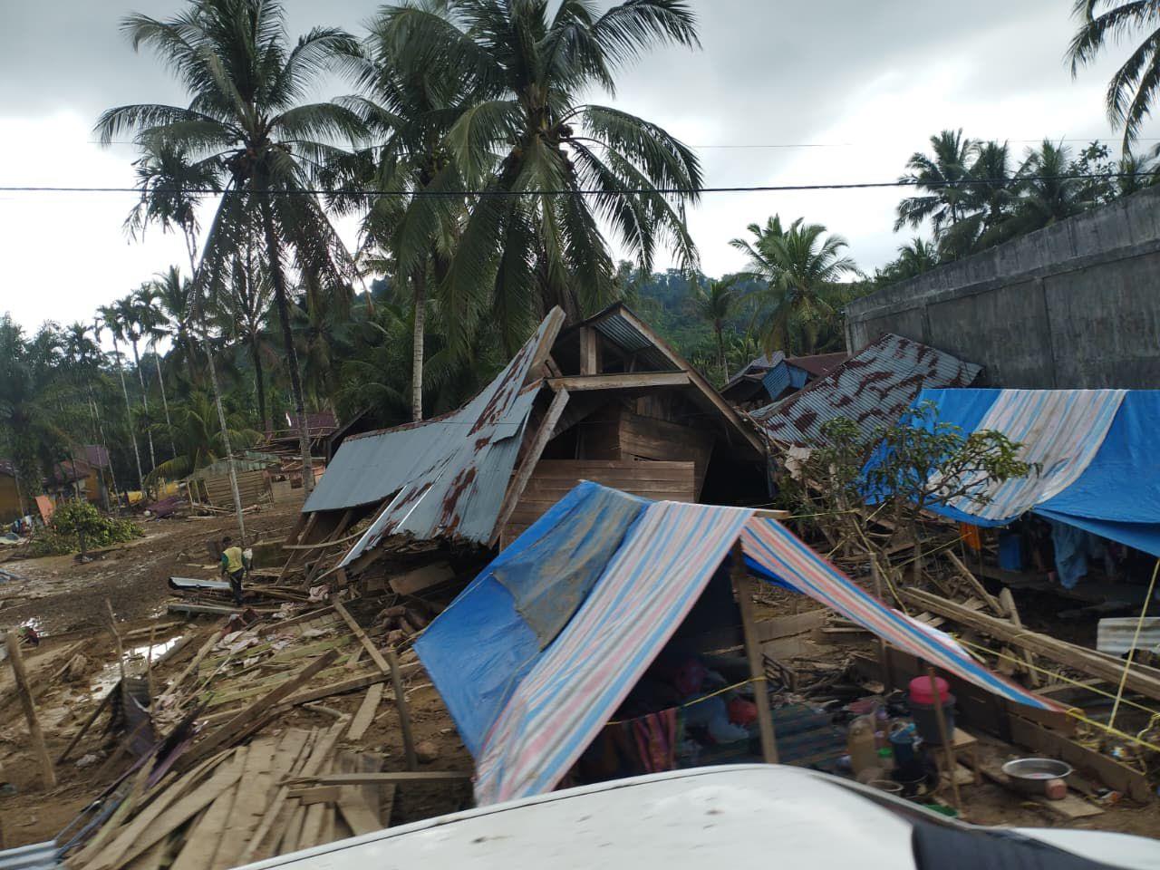 Selama menunggu bantuan masuk, warga desa membangun tempat pengungsian mandiri menggunakan terpal, meski tidak ada korban jiwa, warga mengalami trauma setiap kali hujan turun.