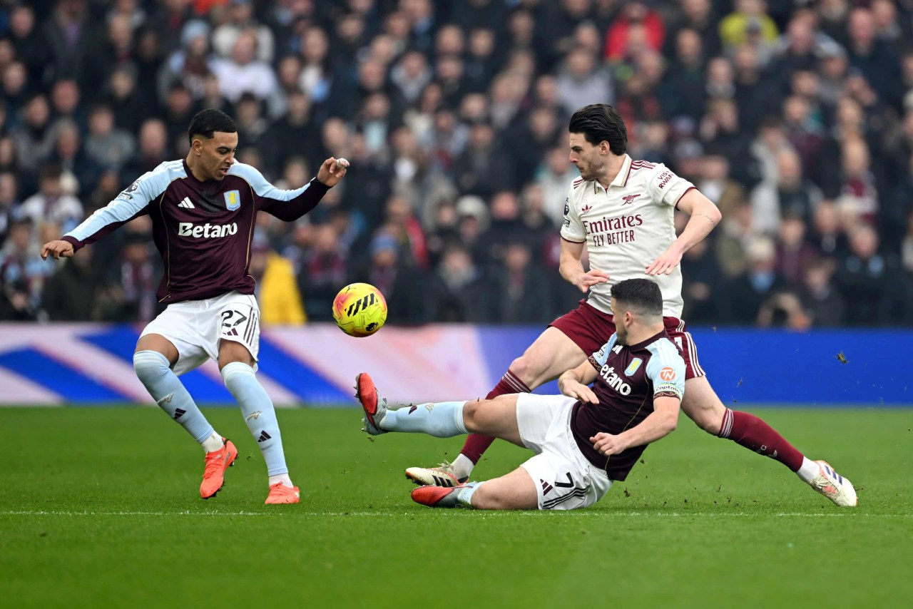 Momen Declan Rice dalam laga tandang Arsenal lawan Aston Villa, laga lanjutan pekan kelima belas Liga Inggris 2025/2026, Sabtu 6 Desember 2025-Shaun Botteril-Getty Images