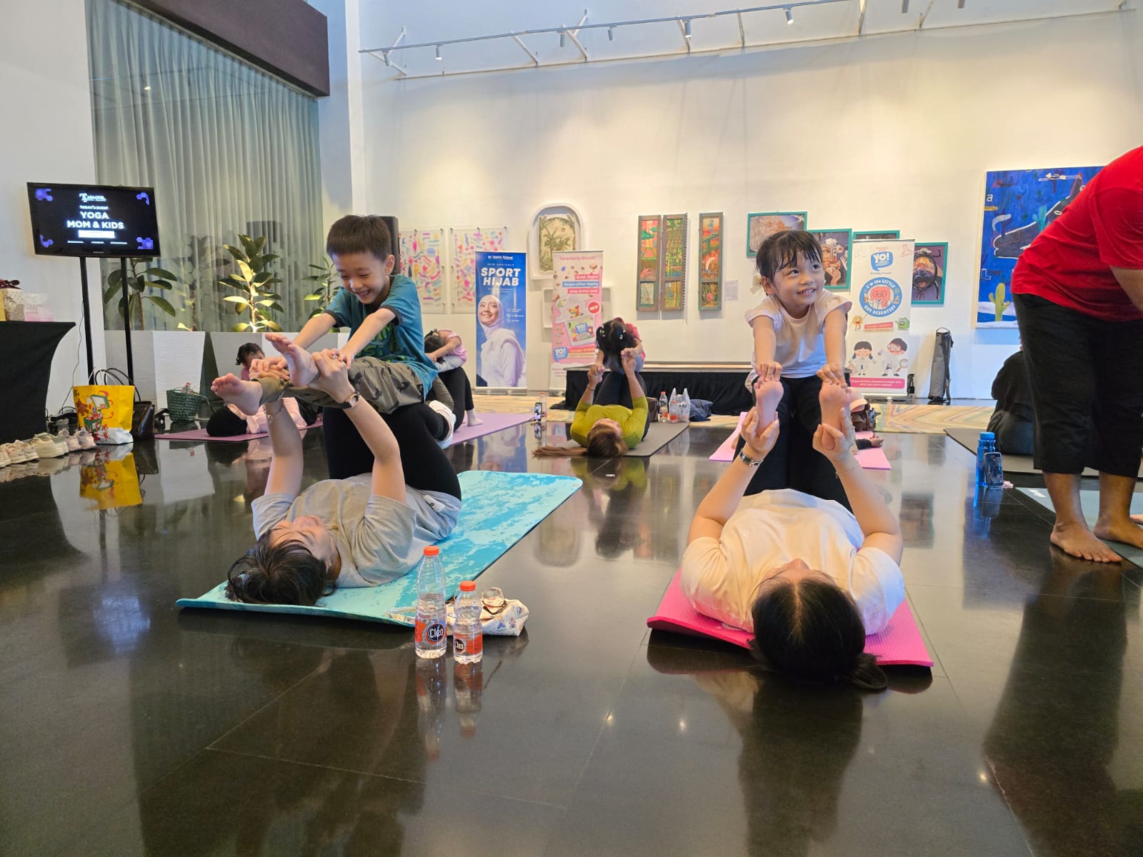 Ruang itu pun jadi wadah kebersamaan ibu dan anak. Mereka berkumpul dalam kegiatan bertajuk Mom & Kids Joyful Yoga, khusus menyambut Hari Ibu yang jatuh pada 22 Desember.