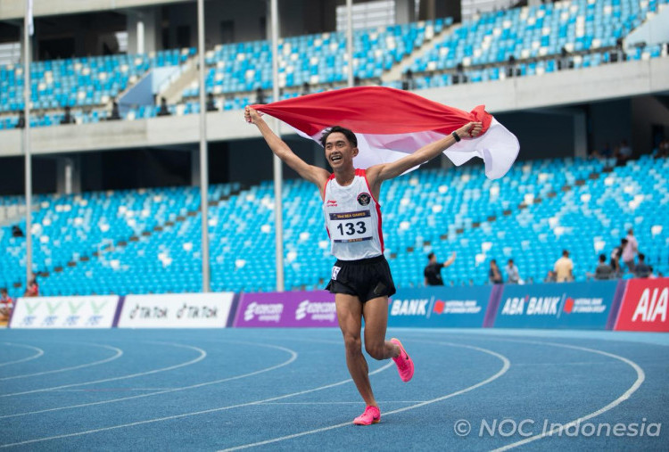 Pelari jarak jauh nasional Robi Syanturi menjadi pembawa bendera Indonesia di upacara pembukaan SEA Games 2025-Komite Olimpiade Indonesia-