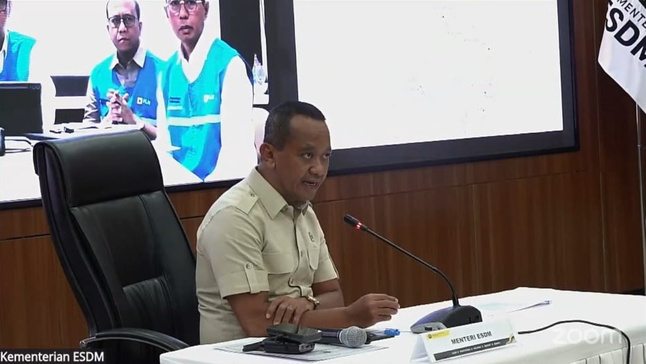 Menteri Energi dan Sumber Daya Mineral (ESDM) Bahlil Lahadalia bersama Direktur Utama (Dirut) PT PLN Darmawan Prasodjo saat konferensi pers virtualterkait laporan kondisi lapangan soal listrik di Aceh pada hari Selasa, 9 Desember 2025.--Siaran Pers