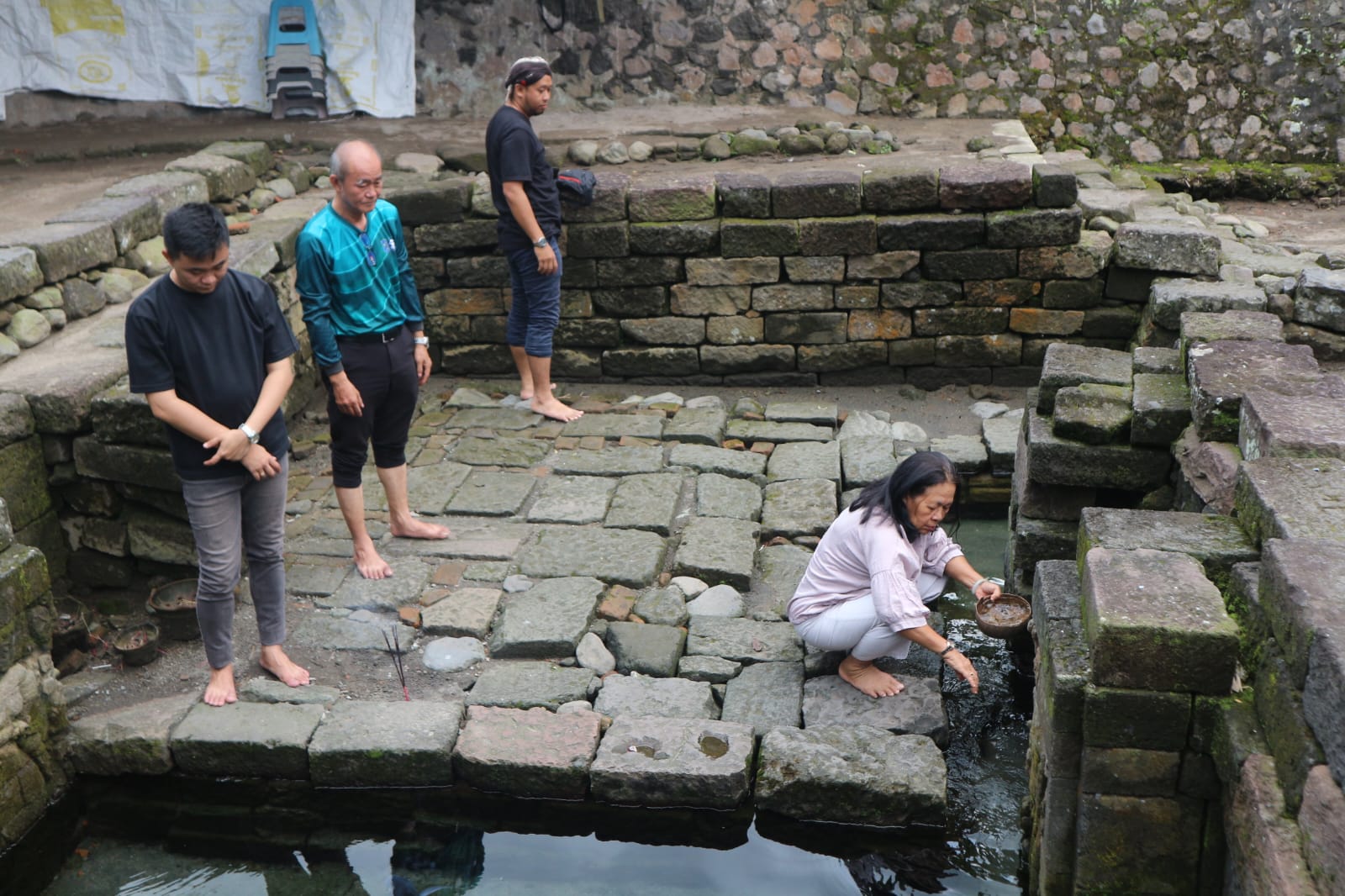 Kemudian kami bergantian mengambil air. Membasuh diri secara bergantian. Mulai dari yang paling sepuh hingga paling muda: Xs. Titis, Ws. Liem, saya, Panji, terakhir Surya. Tapi begitulah cara orang zaman dulu sebelum memasuki kompleks candi. Bersuci terlebih dahulu dengan air di petirtaan.