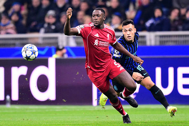 Duel Ibrahima Konate (depan) dan Lautaro Martinez (belakang) di laga Inter Milan vs Liverpool, Rabu, 10 Desember 2025-Getty Images-