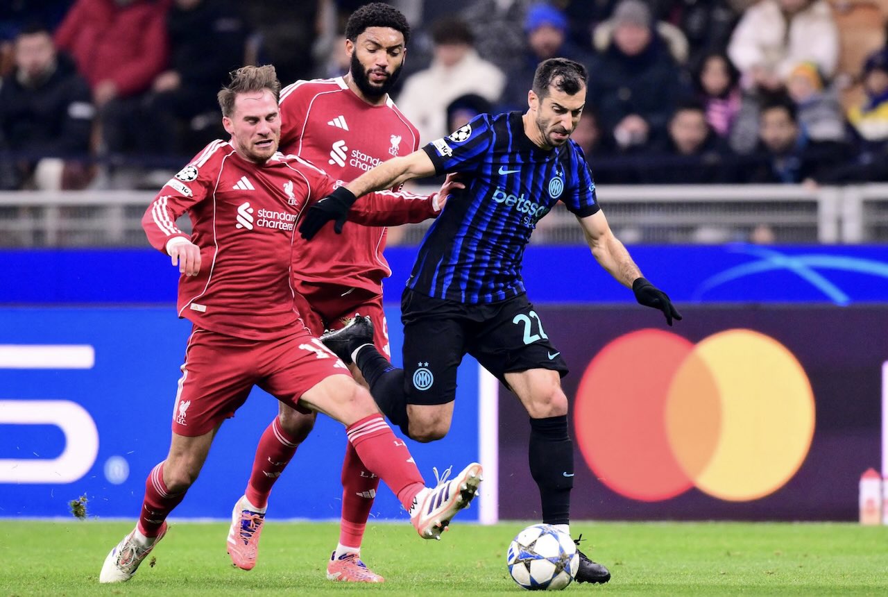 Inter Milan vs Liverpool 0-1, penalti Szoboszlai menangkan The Reds. Foto: Bintang Liverpool Alexis Mac Allister dihadang Henrikh Mkhitaryan.-Stefano Relandini-AFP