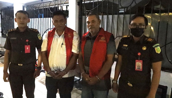 Kedua tersangka menuju ke Supriyatno dan Heri Budianto menuju Cabang Rumah Tahanan Negara (Rutan) Kelas I Surabaya pada Kejaksaan Tinggi Jawa Timur.-memorandum.disway.id/Jaka Santanu Wijaya-