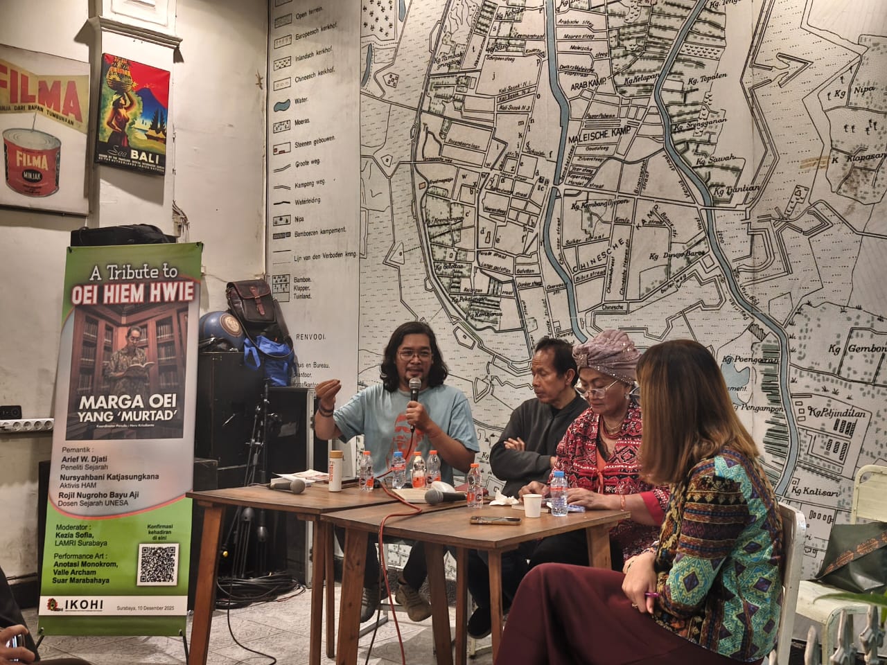 Suasana diskusi buku A Tribute to Oei Hiem Hwie: Marga Oei yang 'Murtad' di Lodji Besar Peneleh, 10 Desember 2025.-Boy Slamet-HARIAN DISWAY