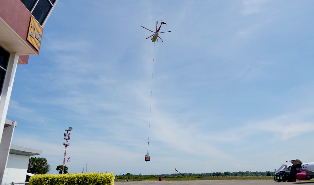 Pengiriman dilakukan dengan helikopter Sikorsky S-61A yang lepas landas dari Bandara Sultan Iskandar Muda, Banda Aceh.