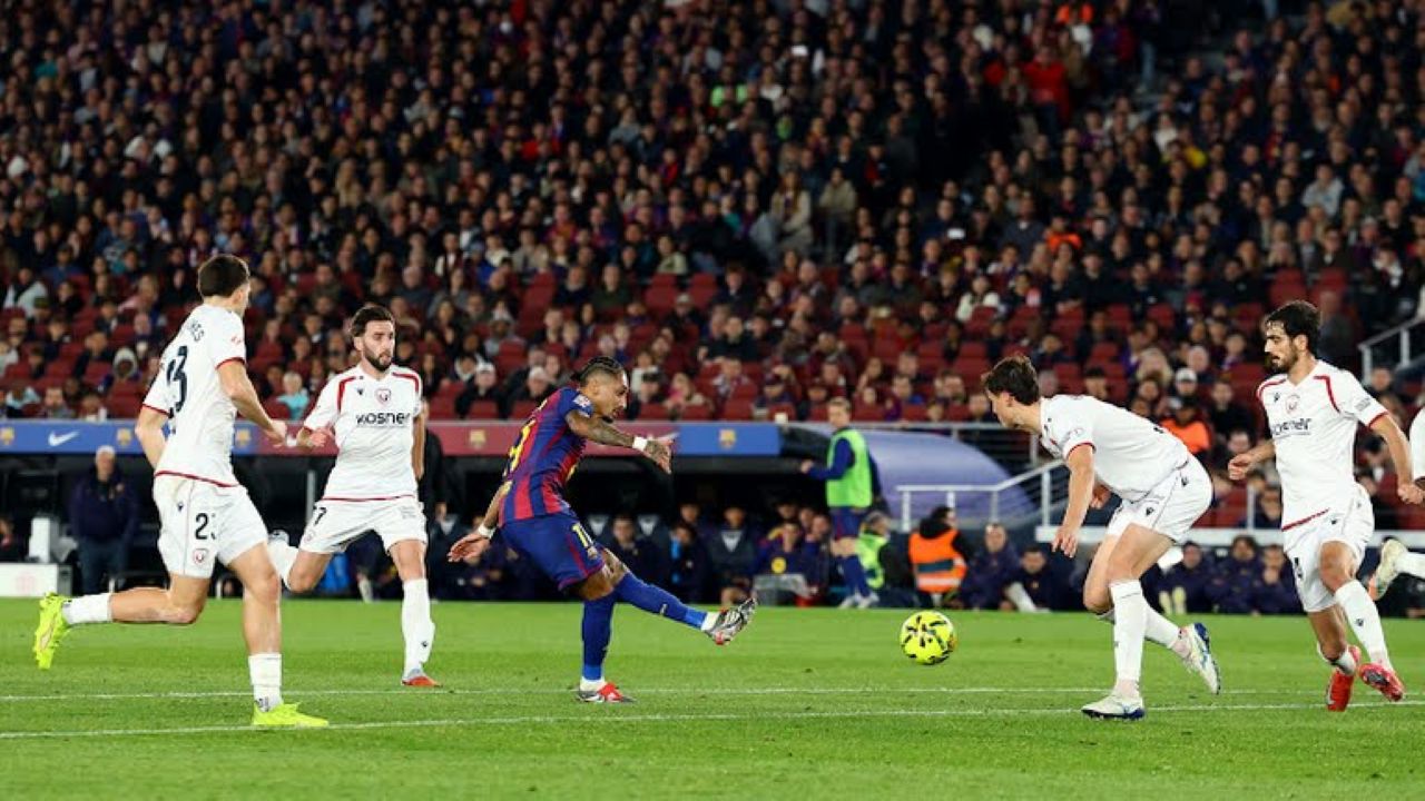 Bola sempat diblok bek Osasuna, tetapi jatuh ke kaki Raphinha di tiang jauh. Tanpa kesulitan, ia menuntaskan peluang dan mencetak gol keduanya malam itu. Skor 2–0.