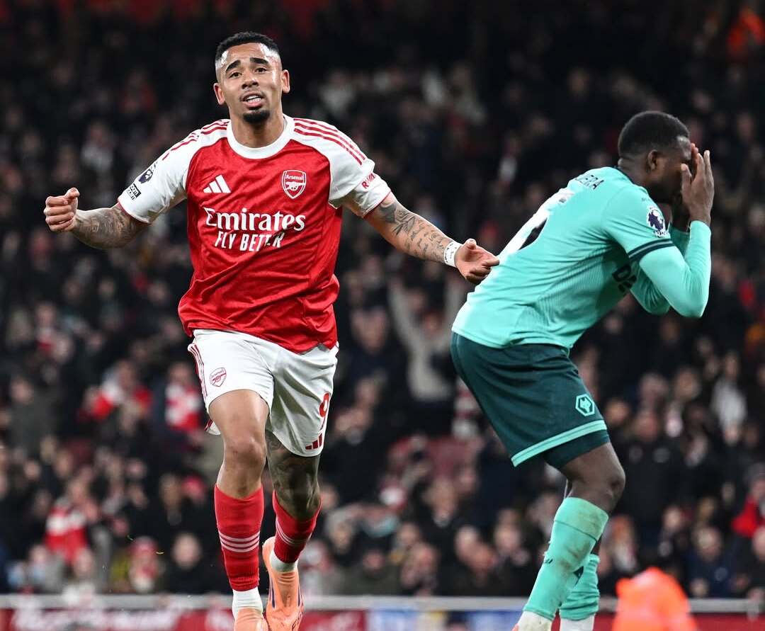 Selebrasi penyerang Arsenal, Gabriel Jesus, setelah timnya mencetak gol kedua saat menghadapi Wolverhampton Wanderers. Minggu, 14 Desember 2025--Instagram @premierleague