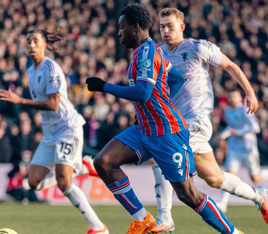Aksi penyerang Crystal Palace, Eddie Nketiah, ketika berusaha melewati hadangan lini pertahanan Manchester United. Minggu, 30 November 2025--Instagram @cpfc