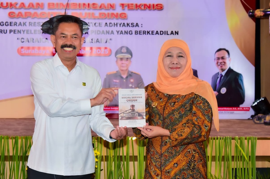 Pada forum tersebut, Jampidum Kejagung RI menyerahkan buku berjudul Desain Ideal Hasil Implementasi Social Service Order kepada Gubernur Jawa Timur. Buku tersebut merupakan simbol penguatan konsep pidana kerja sosial di daerah. (*)