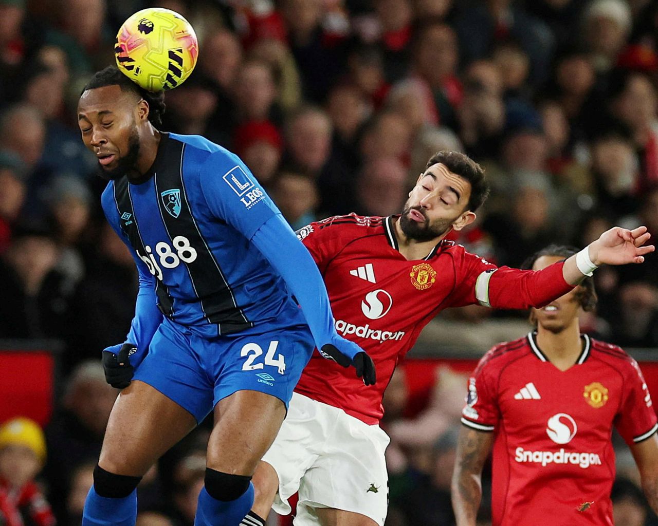 Duel Antoine Semenyo (kiri) dan Bruno Fernandes (kanan) dalam laga Man United vs Bournemouth, laga lanjutan Liga Inggris pekan ke-16, Selasa 16 Desember 2025-Phil Noble-Getty Images