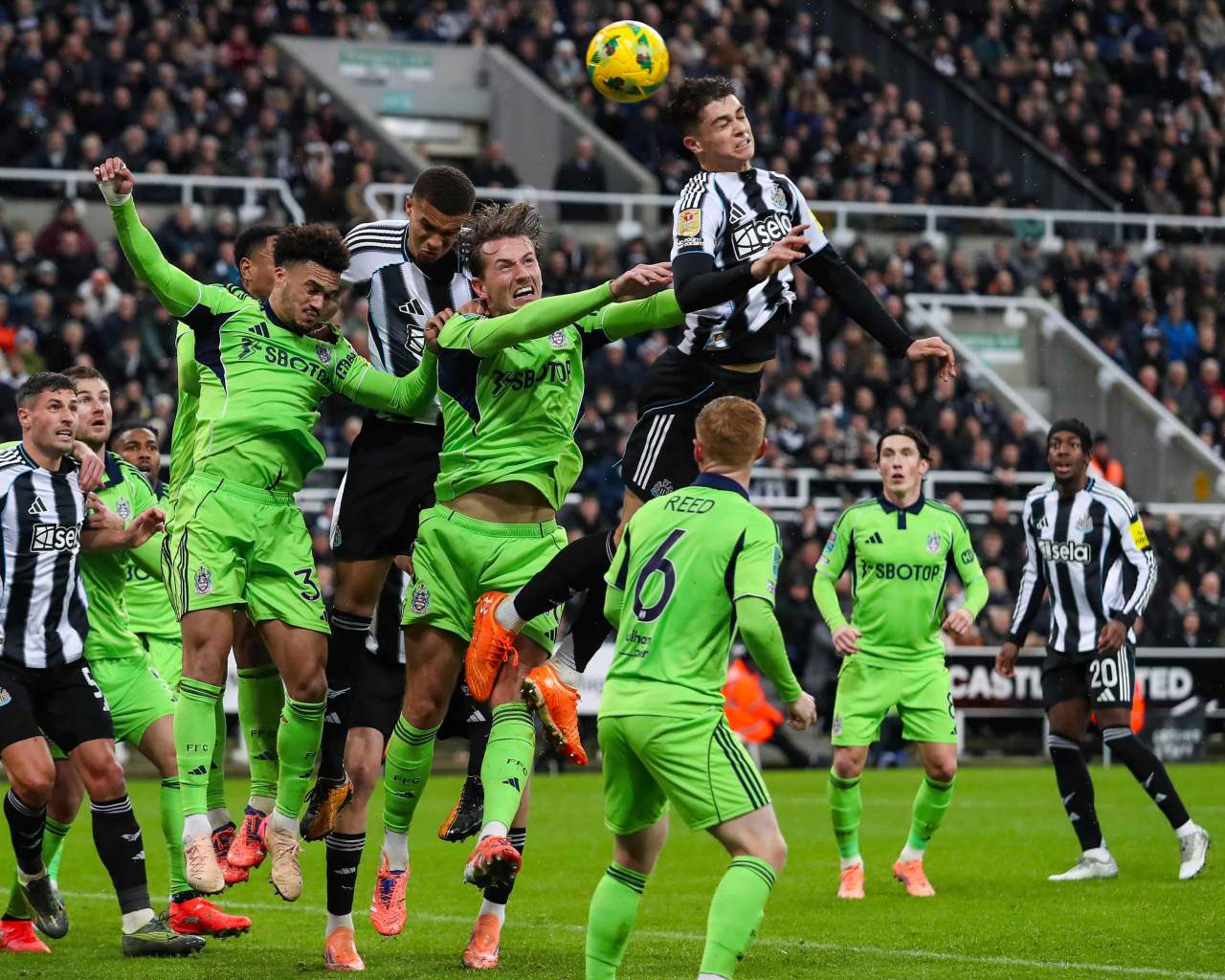 Gol sundulan di menit akhir oleh Lewis Miley memastikan Newcastle United menang 2-1 atas Fulham dan melaju ke semifinal Carabao Cup.--Getty Images