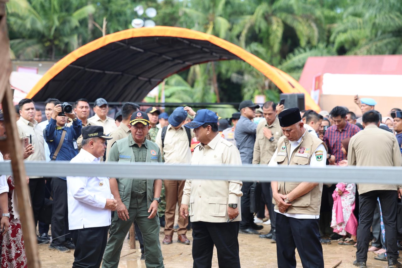 Presiden Republik Indonesia Prabowo Subianto sedang memeriksa rencana pembangunan hunian sementara (huntara) di Kabupaten Agam, Provinsi Sumatra Barat pada Kamis, 18 Desember 2025.--Siaran Pers