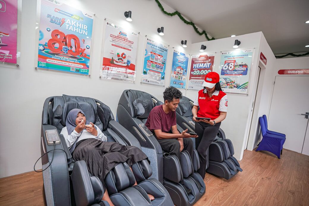 Layanan kursi pijat bagi masyarakat yang mampir ke Serambi MyPertamina-Dok. Pertamina Patra Niaga-