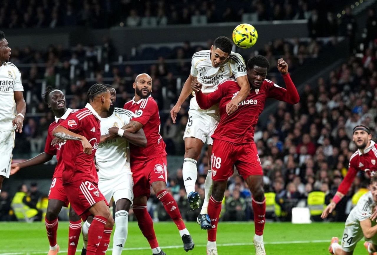 Kebuntuan pecah pada menit ke-38. Dari situasi bola mati, Rodrygo mengirimkan tendangan bebas akurat yang disambut sundulan Jude Bellingham, menaklukkan kiper Sevilla dan membawa Madrid unggul 1-0.