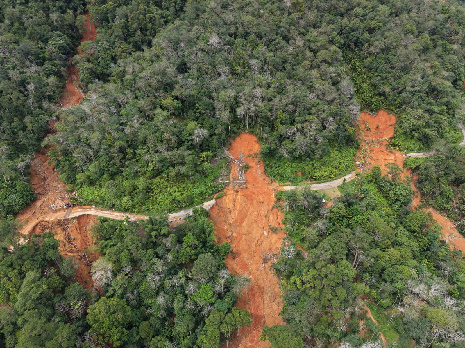 Salah satu titik longsor dilaporkan memiliki panjang sekitar 50 meter dengan lebar mencapai 20 meter, sehingga menutup total badan jalan dan menghentikan arus lalu lintas.
