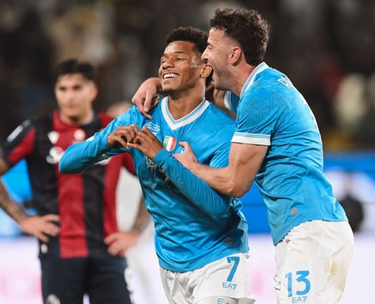Selebrasi David Neres usai buka keunggulan bagi Napoli atas Bologna dalam laga final Supercoppa Italiana, Selasa 23 Desember 2025--@SSCNapoli-Instagram
