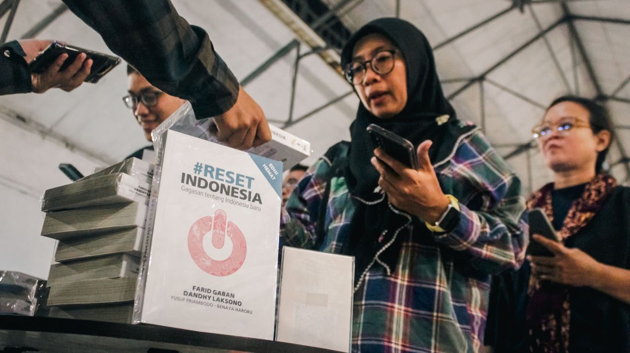 SURABAYA, HARIAN DISWAY – Lapak Baca dan Bedah Buku #Reset Indonesia mampir ke Surabaya. Dalam rangkaian roadshow-nya ke-50 kota, Farid Gaban bersama Dandhy Laksono dan Yusuf Priambodo menyapa publik Kota Pahlawan pada Sabtu malam, 27 Desember 2025.