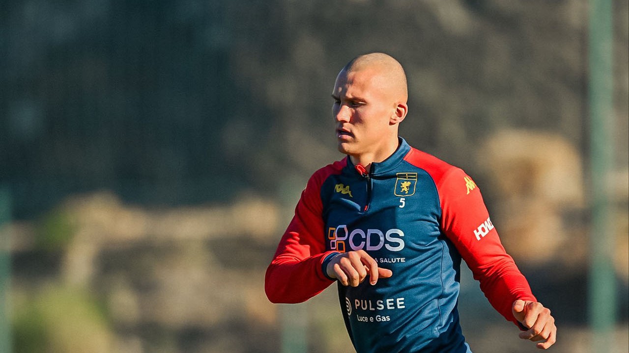Leo Østigård, pemain bek Genoa yang akan ikut bertanding melawan Roma.-X @GenoaCFC-X @GenoaCFC
