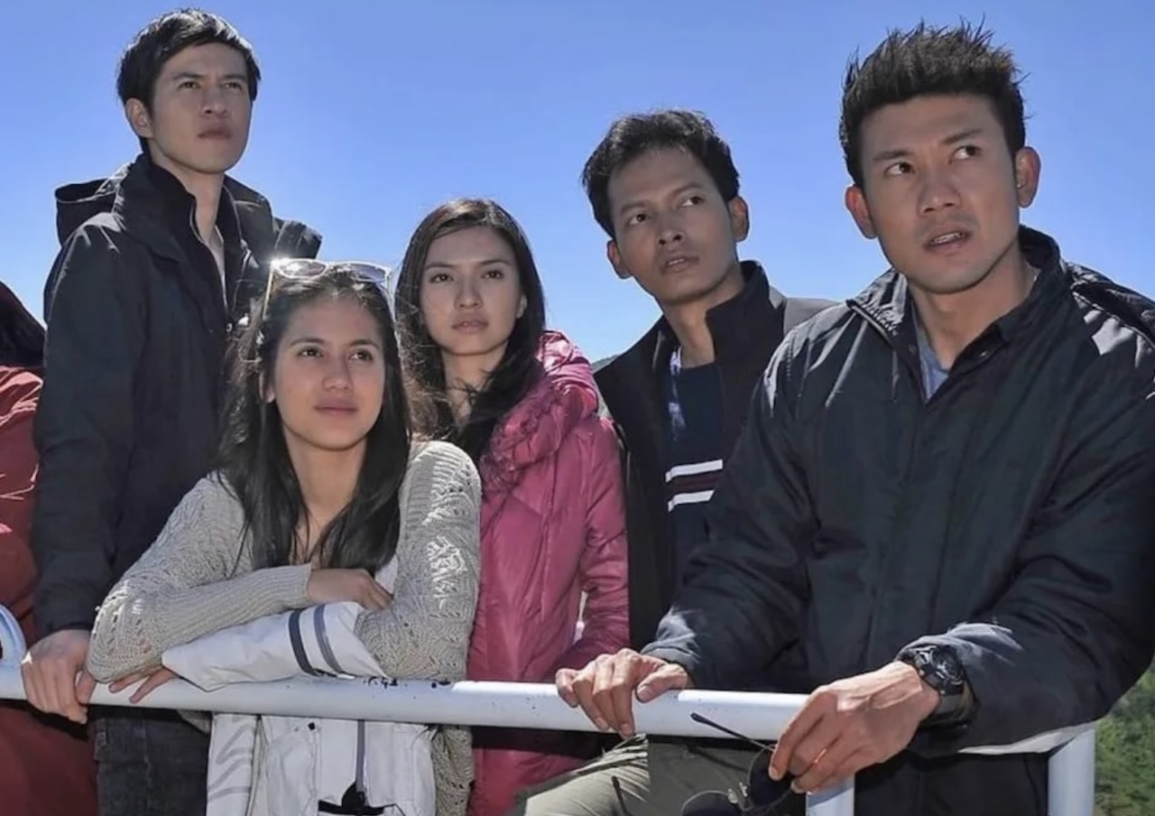 5 Cm dibuatkan sekuel setelah 14 tahun. Foto: dari kiri, Herjunot Ali, Pevita Pearce, Raline Shah, Fedi Nuril, dan Denny Sumargo dalam 5 Cm yang tayang pada 2012.-Soraya Intercine Films -