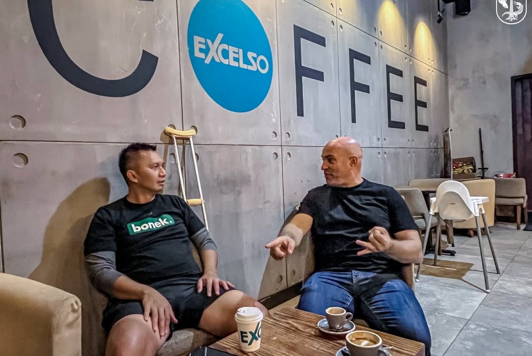 Bernardo Tavares (kanan) bersama Presiden Persebaya, Azrul Ananda (kiri), ketika berbincang bersama, Senin, 5 Januari 2026. -Instagram @officialpersebaya -