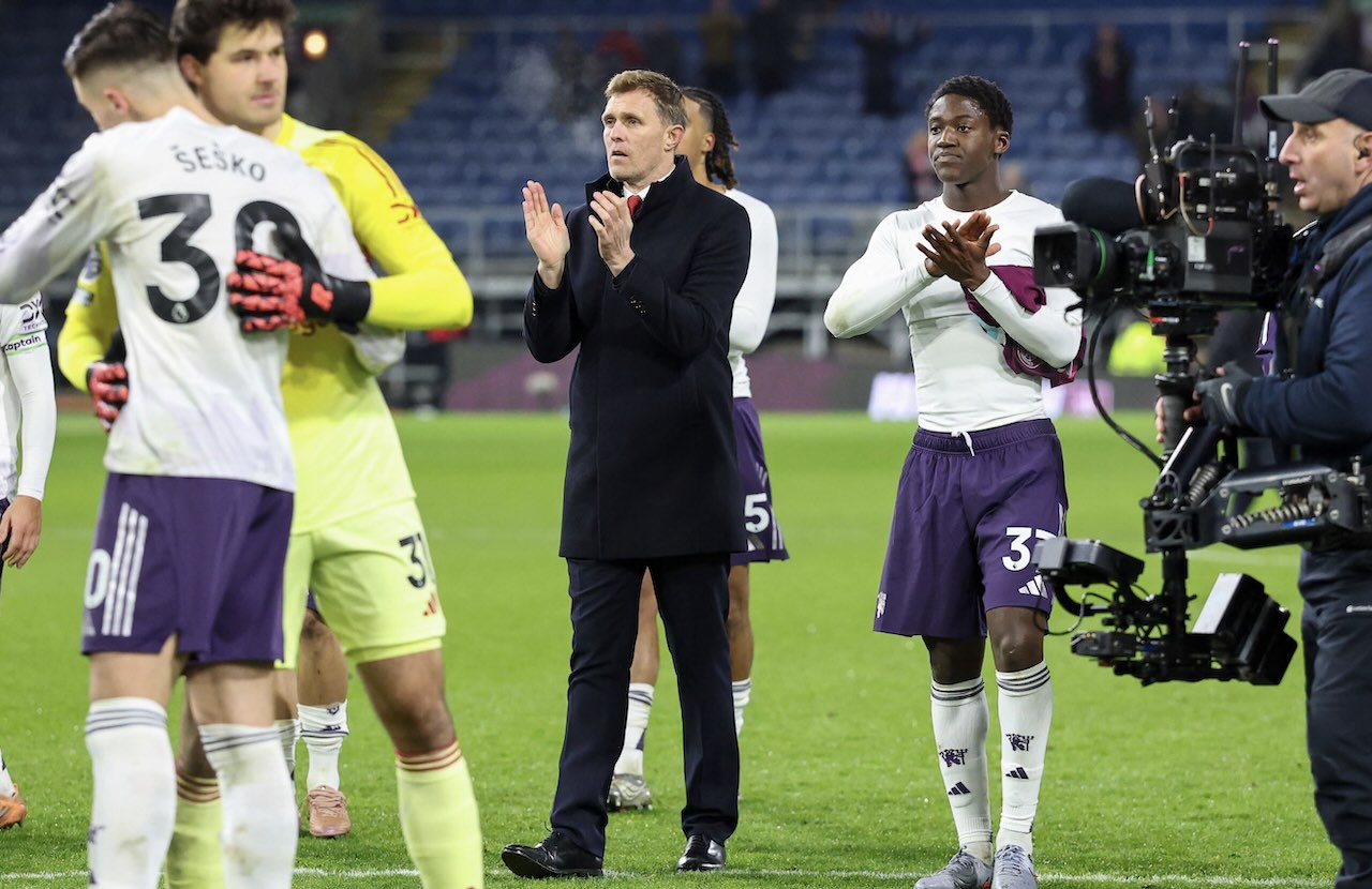 Burnley vs Man United 2-2, Setan Merah belum bangkit. Foto: Darren Fletcher memberi aplaus anak buahnya yang ditahan imbang Burnley, 8 Januari 2026.-Oli Scharff-AFP
